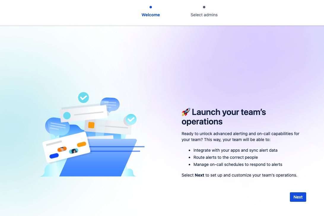 Go to your newly created team, and you should see the option Start your team's operations with alerting.