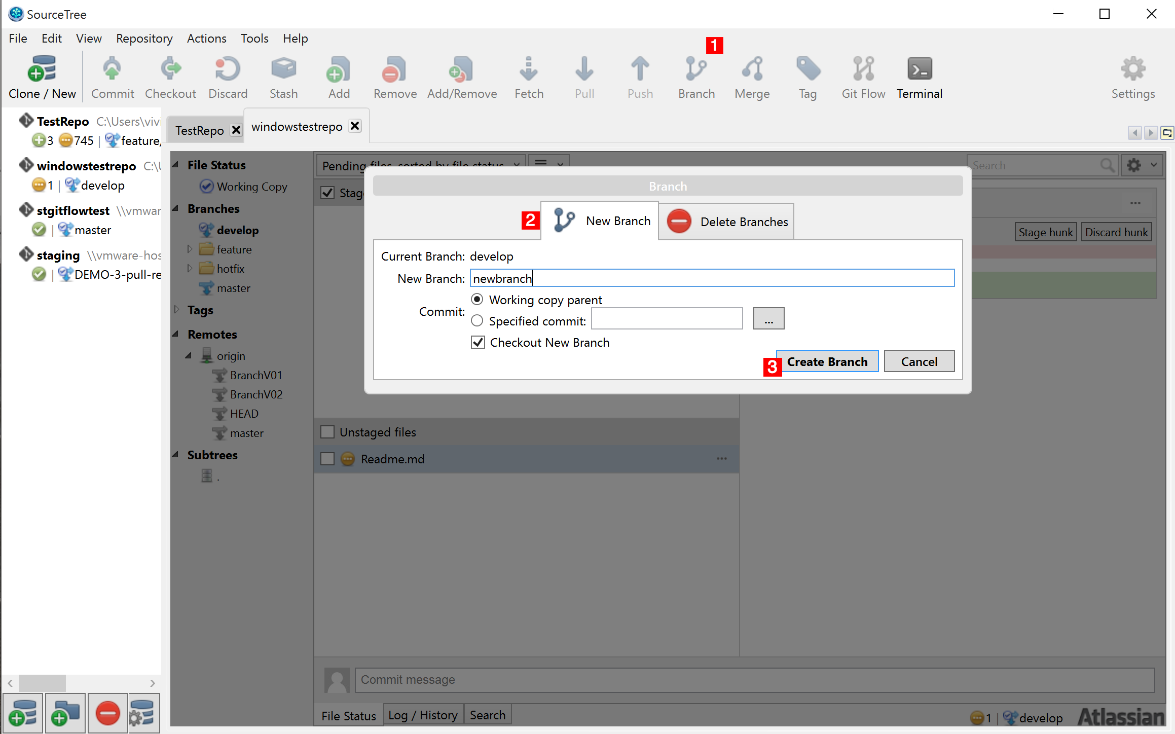 Click on "Create Branch".